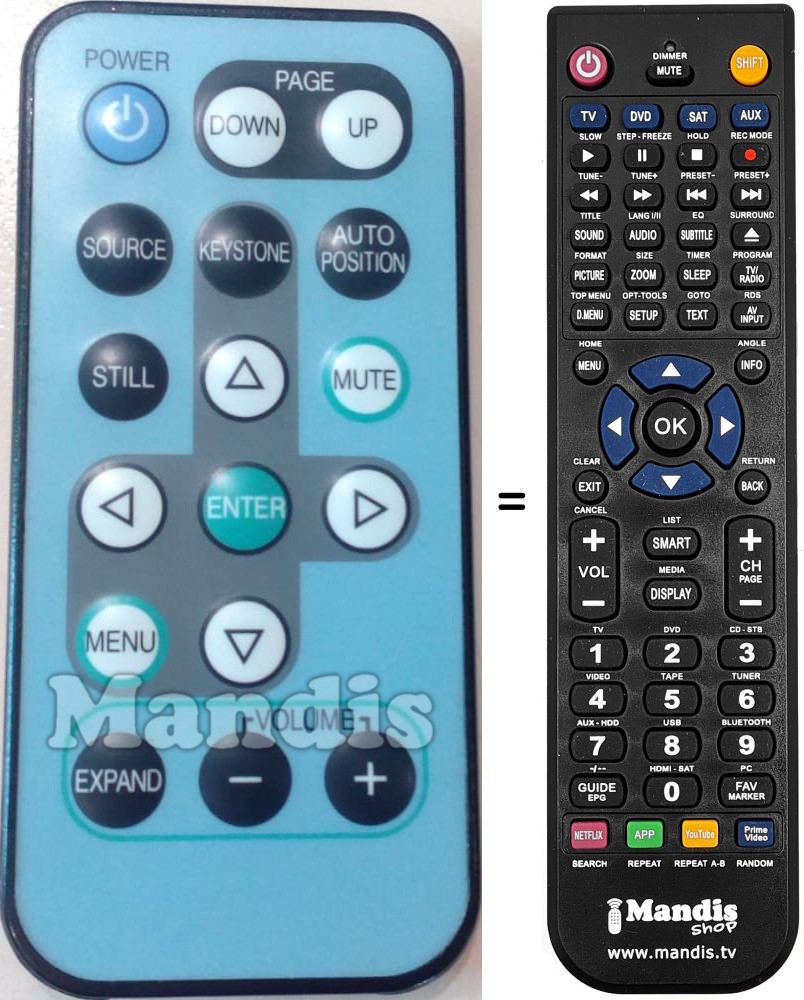 Mando a distancia que reemplaza al original en todas sus funciones.