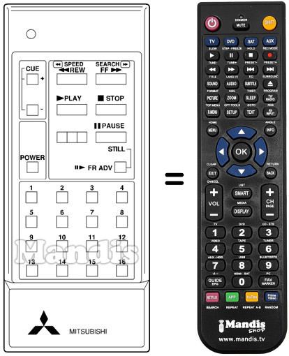 Mando a distancia que reemplaza al original en todas sus funciones. No se trata de una mando universal sinó de un mando que sustituye al original. Recibirá el mando completamente listo para hacerlo funcionar sólo necesita ponerle las pilas. No es necesario programarlo. Le damos total garantía de que el mando cumplirá con las mismas funciones del mando original.