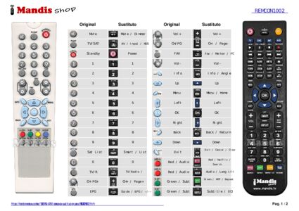 Se incluye un documento para ayudarte a usar el nuevo mando a distancia fácilmente, indicando la correspondencia de los botones.