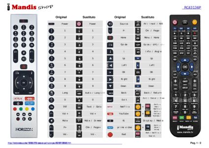 1. Observa las imágenes de los dos mandos a distancia: el original (a la izquierda) y el de sustitución (a la derecha).