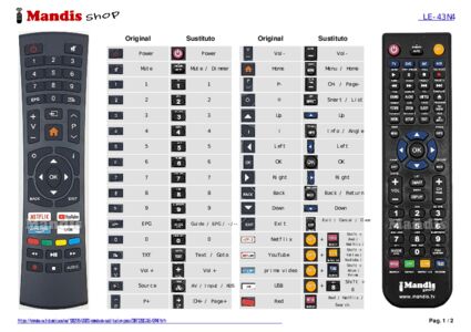 Este mando a distancia reemplaza completamente tu DVB-T2S2C (LE-43N4) y ofrece todas las funciones del original.