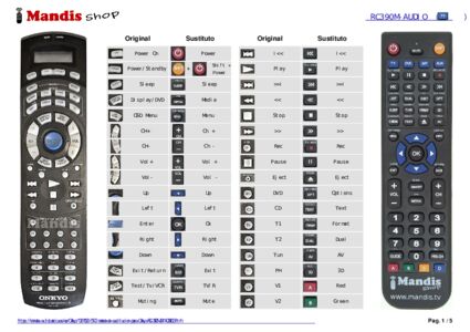 A continuación, le mostraremos la correspondencia entre cada uno de los botones del mando original y el botón que realiza la misma función en el mando de sustitución. En algunos casos, es posible que necesite presionar la tecla SHIFT antes de pulsar otro botón para realizar ciertas acciones. Estas funciones adicionales suelen ser poco utilizadas y se incluyen para facilitar su comprensión del nuevo mando a distancia, o porque el mando original tiene más botones que su equivalente.
