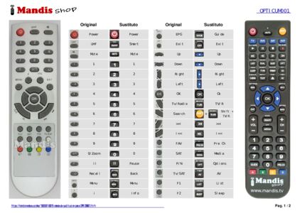 A continuación, le mostraremos la correspondencia entre cada uno de los botones del mando original y el botón que realiza la misma función en el mando de sustitución. En algunos casos, es posible que necesite presionar la tecla SHIFT antes de pulsar otro botón para realizar ciertas acciones. Estas funciones adicionales suelen ser poco utilizadas y se incluyen para facilitar su comprensión del nuevo mando a distancia, o porque el mando original tiene más botones que su equivalente.