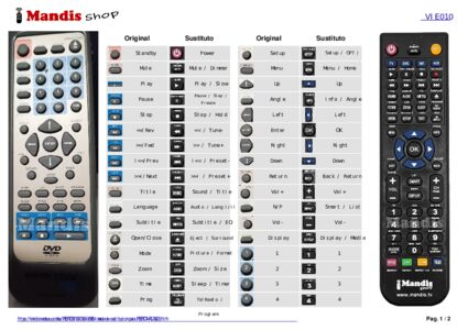 A continuación, le mostraremos la correspondencia entre cada uno de los botones del mando original y el botón que realiza la misma función en el mando de sustitución. En algunos casos, es posible que necesite presionar la tecla SHIFT antes de pulsar otro botón para realizar ciertas acciones. Estas funciones adicionales suelen ser poco utilizadas y se incluyen para facilitar su comprensión del nuevo mando a distancia, o porque el mando original tiene más botones que su equivalente.