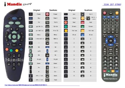 A continuación, le mostraremos la correspondencia entre cada uno de los botones del mando original y el botón que realiza la misma función en el mando de sustitución. En algunos casos, es posible que necesite presionar la tecla SHIFT antes de pulsar otro botón para realizar ciertas acciones. Estas funciones adicionales suelen ser poco utilizadas y se incluyen para facilitar su comprensión del nuevo mando a distancia, o porque el mando original tiene más botones que su equivalente.
