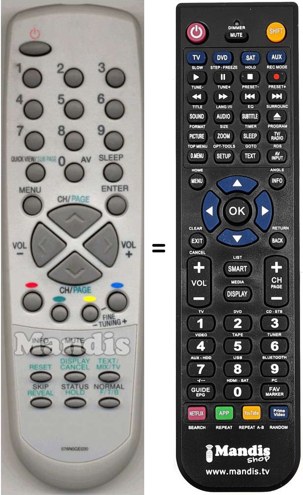 Mando a distancia que reemplaza al original en todas sus funciones.