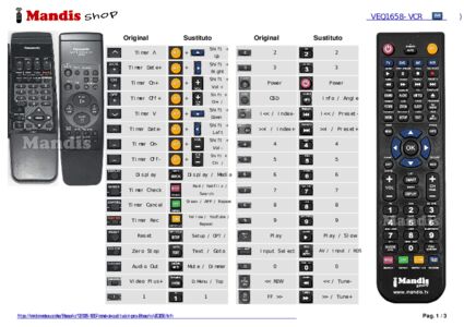 A continuación, le mostraremos la correspondencia entre cada uno de los botones del mando original y el botón que realiza la misma función en el mando de sustitución. En algunos casos, es posible que necesite presionar la tecla SHIFT antes de pulsar otro botón para realizar ciertas acciones. Estas funciones adicionales suelen ser poco utilizadas y se incluyen para facilitar su comprensión del nuevo mando a distancia, o porque el mando original tiene más botones que su equivalente.
