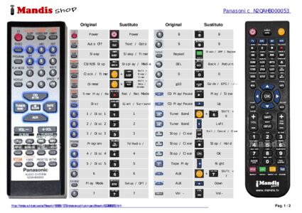 Inicio > Marcas > Mandos a distancia Panasonic > Mando a distancia para Panasonic N2QAHB000053 > Distribución interactiva de teclas Panasonic N2QAHB000053