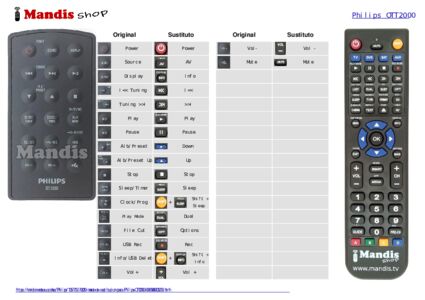 A continuación, le mostraremos la correspondencia entre cada uno de los botones del mando original y el botón que realiza la misma función en el mando de sustitución. En algunos casos, es posible que necesite presionar la tecla SHIFT antes de pulsar otro botón para realizar ciertas acciones. Estas funciones adicionales suelen ser poco utilizadas y se incluyen para facilitar su comprensión del nuevo mando a distancia, o porque el mando original tiene más botones que su equivalente.
