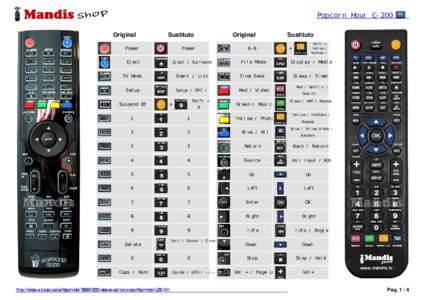 A continuación, le mostraremos la correspondencia entre cada uno de los botones del mando original y el botón que realiza la misma función en el mando de sustitución. En algunos casos, es posible que necesite presionar la tecla SHIFT antes de pulsar otro botón para realizar ciertas acciones. Estas funciones adicionales suelen ser poco utilizadas y se incluyen para facilitar su comprensión del nuevo mando a distancia, o porque el mando original tiene más botones que su equivalente.