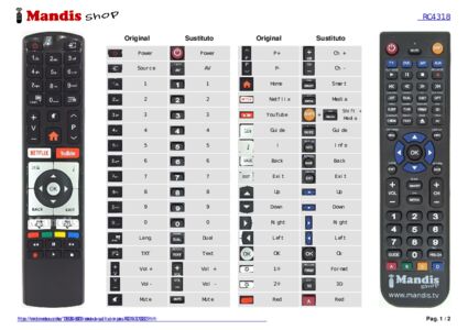 Este mando a distancia reemplaza completamente tu RC4318 (30100823) y ofrece todas las funciones del original.