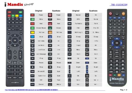 A continuación, le mostraremos la correspondencia entre cada uno de los botones del mando original y el botón que realiza la misma función en el mando de sustitución. En algunos casos, es posible que necesite presionar la tecla SHIFT antes de pulsar otro botón para realizar ciertas acciones. Estas funciones adicionales suelen ser poco utilizadas y se incluyen para facilitar su comprensión del nuevo mando a distancia, o porque el mando original tiene más botones que su equivalente.