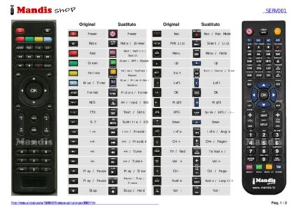 A continuación, le mostraremos la correspondencia entre cada uno de los botones del mando original y el botón que realiza la misma función en el mando de sustitución. En algunos casos, es posible que necesite presionar la tecla SHIFT antes de pulsar otro botón para realizar ciertas acciones. Estas funciones adicionales suelen ser poco utilizadas y se incluyen para facilitar su comprensión del nuevo mando a distancia, o porque el mando original tiene más botones que su equivalente.