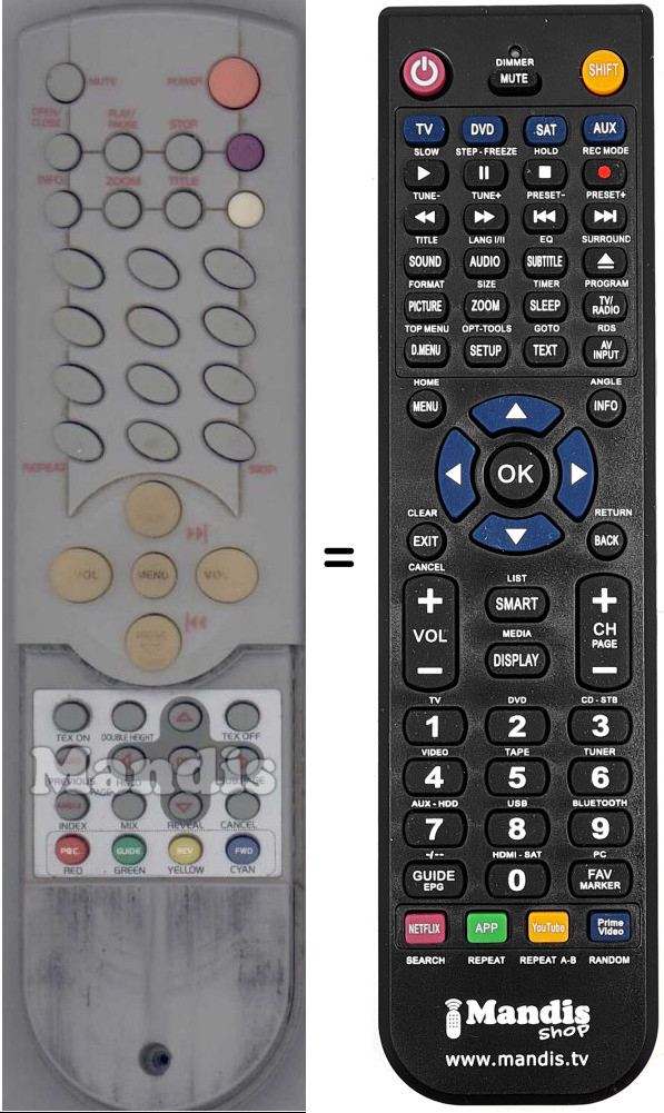 Mando a distancia que reemplaza al original en todas sus funciones.