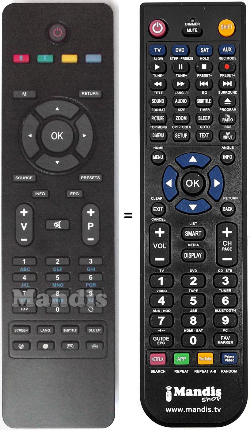 Mando a distancia que reemplaza al original en todas sus funciones.