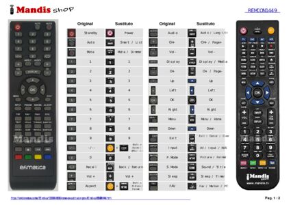 Se incluye un documento para ayudarte a usar el nuevo mando a distancia fácilmente, indicando la correspondencia de los botones.