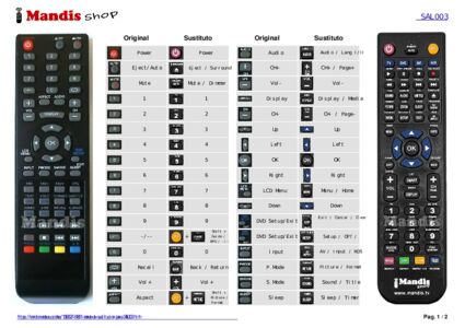 A continuación, le mostraremos la correspondencia entre cada uno de los botones del mando original y el botón que realiza la misma función en el mando de sustitución. En algunos casos, es posible que necesite presionar la tecla SHIFT antes de pulsar otro botón para realizar ciertas acciones. Estas funciones adicionales suelen ser poco utilizadas y se incluyen para facilitar su comprensión del nuevo mando a distancia, o porque el mando original tiene más botones que su equivalente.