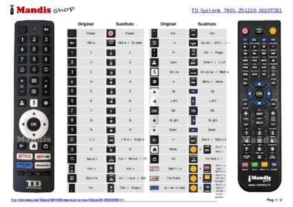 Inicio > Marcas > Mandos a distancia TD Systems > Mando a distancia para TD Systems 7601-ZS1220-0020TDS1 > Distribución interactiva de teclas TD Systems 7601-ZS1220-0020TDS1