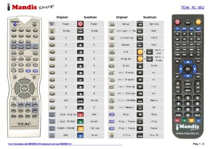 Este mando a distancia reemplaza completamente tu RC-882 y ofrece todas las funciones del original.