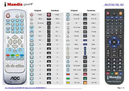 Este mando a distancia reemplaza completamente tu 98LR7SW y ofrece todas las funciones del original.