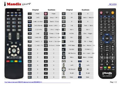 Este mando a distancia reemplaza completamente tu RC1059 (30067042) y ofrece todas las funciones del original.