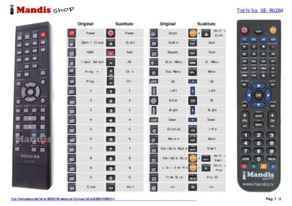 A continuación, le mostraremos la correspondencia entre cada uno de los botones del mando original y el botón que realiza la misma función en el mando de sustitución. En algunos casos, es posible que necesite presionar la tecla SHIFT antes de pulsar otro botón para realizar ciertas acciones. Estas funciones adicionales suelen ser poco utilizadas y se incluyen para facilitar su comprensión del nuevo mando a distancia, o porque el mando original tiene más botones que su equivalente.