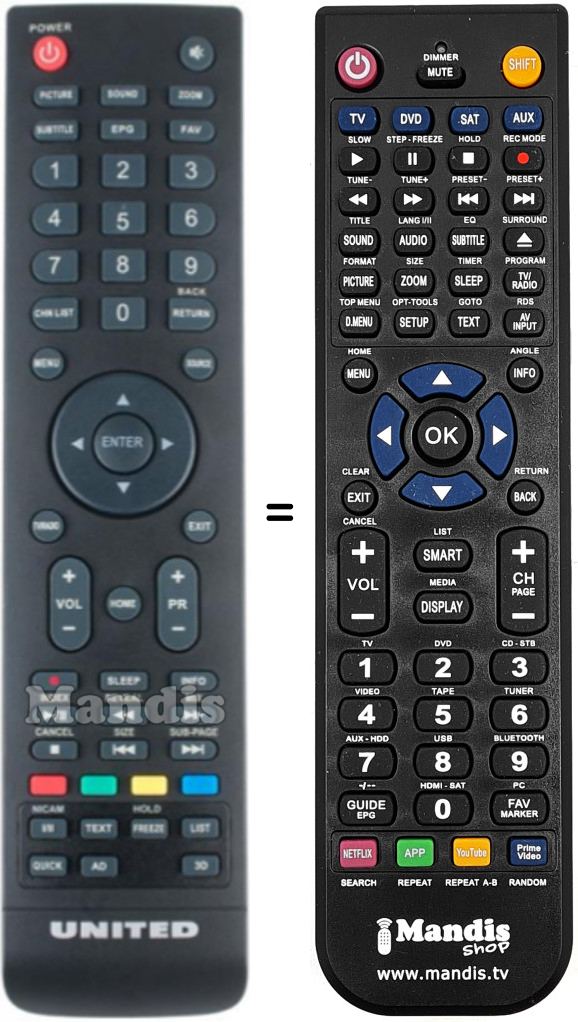 Mando a distancia que reemplaza al original en todas sus funciones.