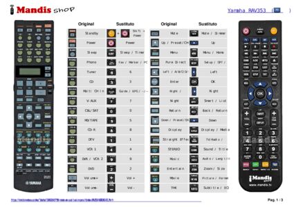 A continuación, le mostraremos la correspondencia entre cada uno de los botones del mando original y el botón que realiza la misma función en el mando de sustitución. En algunos casos, es posible que necesite presionar la tecla SHIFT antes de pulsar otro botón para realizar ciertas acciones. Estas funciones adicionales suelen ser poco utilizadas y se incluyen para facilitar su comprensión del nuevo mando a distancia, o porque el mando original tiene más botones que su equivalente.