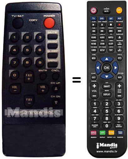 Télécommande qui remplace celle d'origine car elle possède les mêmes fonctions. Il ne s'agit pas d'une télécommande universelle mais d'une télécommande qui remplace celle d'origine. Vous recevrez la télécommande prête à fonctionner, vous n'aurez qu'à mettre les piles. Il n'est pas nécessaire de la programmer. Nous vous garantissons que la télécommande aura exactement les mêmes fonctions que celle d'origine.