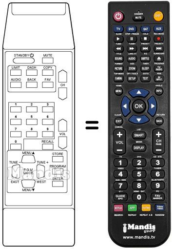 Télécommande qui remplace celle d'origine car elle possède les mêmes fonctions.