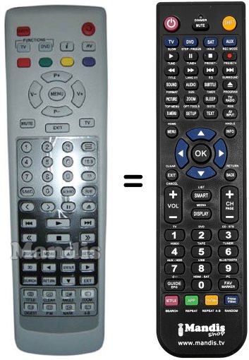 La télécommande équivalente exécute toutes les fonctions, même lorsque la télécommande d'origine commande divers appareils. Dans la télécommande équivalente, est possible de programmer différents appareils (TV, DVD, SAT et AUX) de manière à pouvoir inclure toutes les fonctions de la télécommande d'origine. Si vous voyez le manuel des touches (instructions de la télécommande), vous pouvez vérifier que toutes les fonctions sont présentes.
