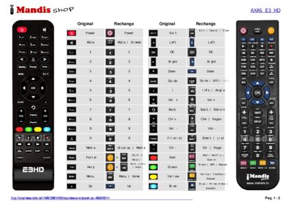 Un document est inclus pour vous aider à utiliser facilement la nouvelle télécommande, en indiquant la correspondance des boutons.