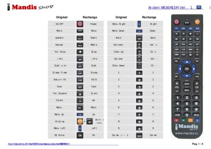 Accueil > Marques > Télécommandes Ardem > Télécommande pour Ardem NR36M15M > Répartition interactive des touches Ardem NR36M15M