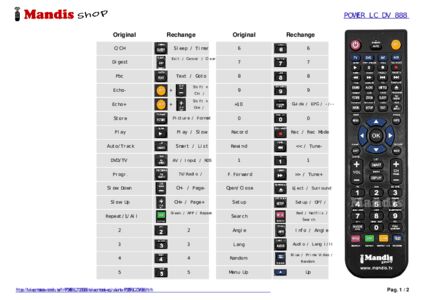 Accueil > Marques > Télécommandes POWER LC > Télécommande pour POWER LC DV 888 > Répartition interactive des touches POWER LC DV 888