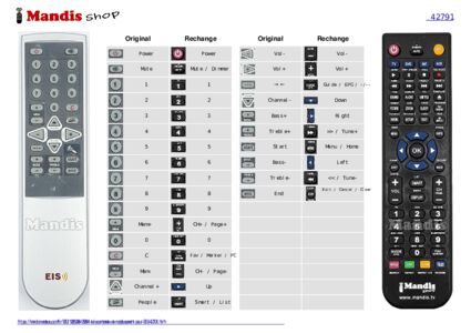 Un document est inclus pour vous aider à utiliser facilement la nouvelle télécommande, en indiquant la correspondance des boutons.