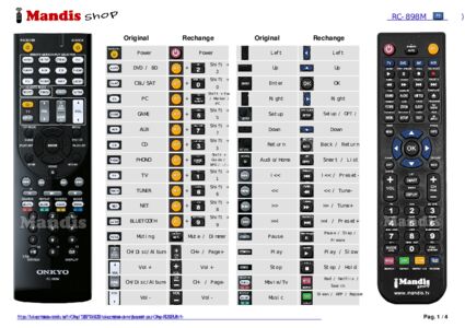 Un document est inclus pour vous aider à utiliser facilement la nouvelle télécommande, en indiquant la correspondance des boutons.