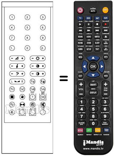 Télécommande qui remplace celle d'origine car elle possède les mêmes fonctions.