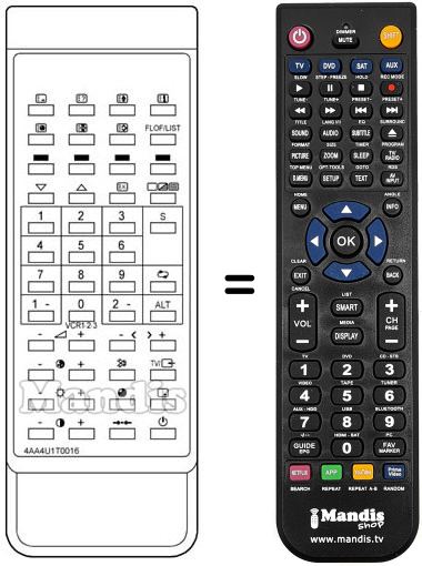 Télécommande qui remplace celle d'origine car elle possède les mêmes fonctions.