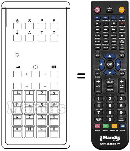 Télécommande qui remplace celle d'origine car elle possède les mêmes fonctions. Il ne s'agit pas d'une télécommande universelle mais d'une télécommande qui remplace celle d'origine. Vous recevrez la télécommande prête à fonctionner, vous n'aurez qu'à mettre les piles. Il n'est pas nécessaire de la programmer. Nous vous garantissons que la télécommande aura exactement les mêmes fonctions que celle d'origine.