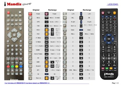 Cette télécommande remplace entièrement votre LED15DVD-1 et offre toutes les fonctions de l'originale.