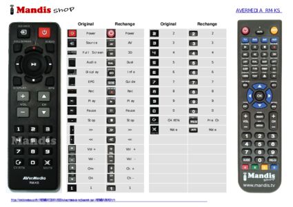 Accueil > Marques > Télécommandes AVERMEDIA > Télécommande pour AVERMEDIA RM-KS