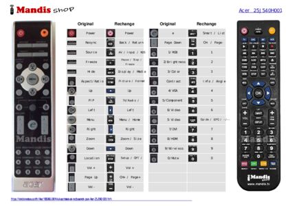 Un document est inclus pour vous aider à utiliser facilement la nouvelle télécommande, en indiquant la correspondance des boutons.