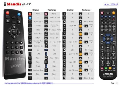 Accueil > Marques > Télécommandes Acer > Télécommande pour Acer VZ.K0300.001