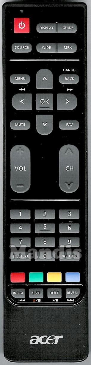 Télécommande d'origine 25.MAE0B.001 pour téléviseurs de la marque Acer. Il s'agit d'un modèle de télécommande d'origine.