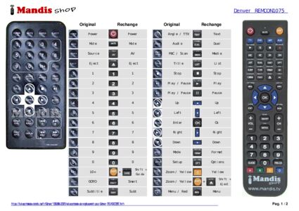 Un document est inclus pour vous aider à utiliser facilement la nouvelle télécommande, en indiquant la correspondance des boutons.