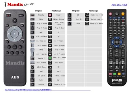 Un document est inclus pour vous aider à utiliser facilement la nouvelle télécommande, en indiquant la correspondance des boutons.