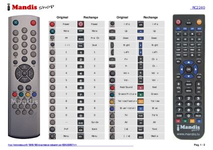 Un document est inclus pour vous aider à utiliser facilement la nouvelle télécommande, en indiquant la correspondance des boutons.