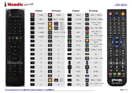 Un document est inclus pour vous aider à utiliser facilement la nouvelle télécommande, en indiquant la correspondance des boutons.