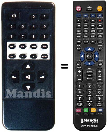 Télécommande qui remplace celle d'origine car elle possède les mêmes fonctions.
