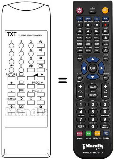 Télécommande qui remplace celle d'origine car elle possède les mêmes fonctions.